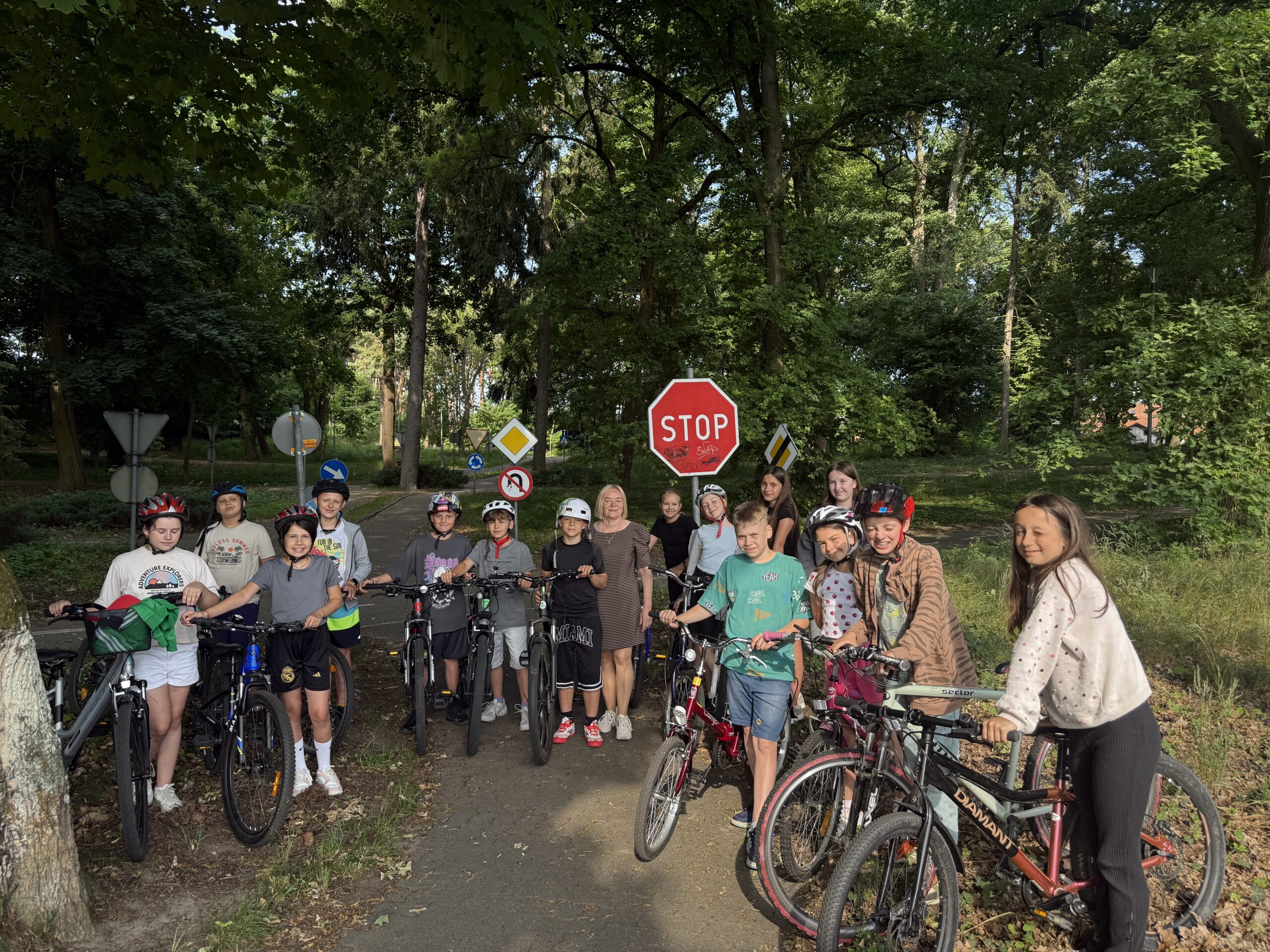 Uczniowie, którzy pozytywnie przeszli pierwszą część egzaminu, w dniu 18 czerwca 2025 r. w Miasteczku Ruchu Drogowego przystąpili do sprawdzianu praktycznego. Egzamin przeprowadzony został pod nadzorem pana dyrektora Marcina Tyczyńskiego i nauczyciela odpowiedzialnego za przygotowanie uczniów pani Jolanty Kałuskiej.