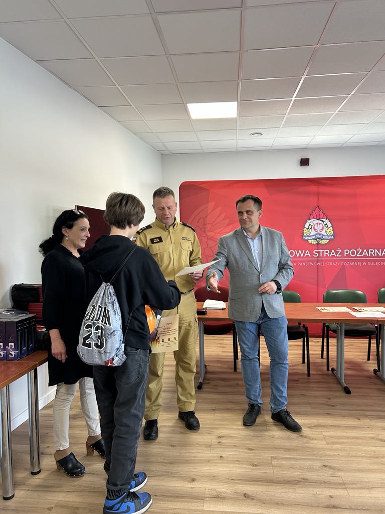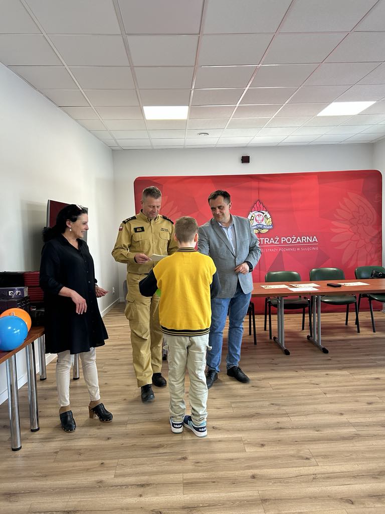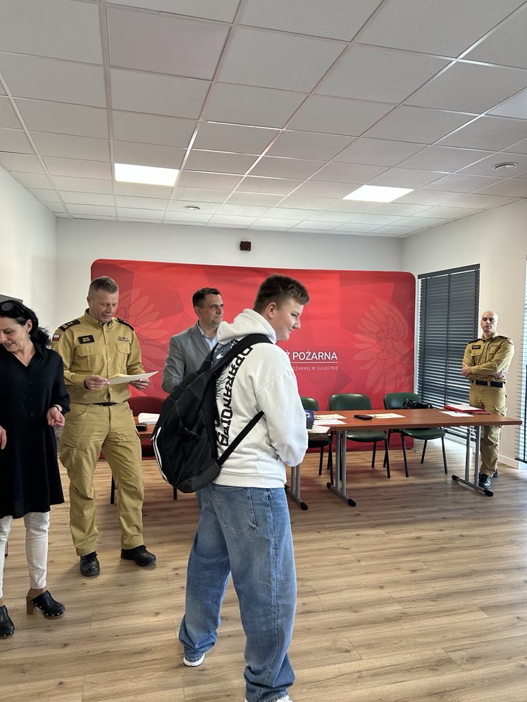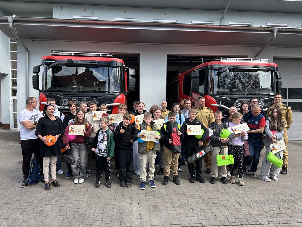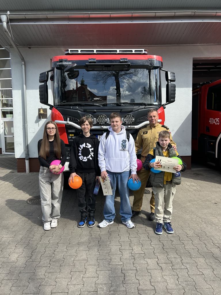 Dnia 14 kwietnia 2025r. w Sulęcinie odbyły się eliminacje powiatowe Ogólnopolskiego Turnieju Wiedzy Pożarniczej „Młodzież zapobiega pożarom”. Naszą szkołę reprezentowali: uczennica klasy VIII Nadia Mróz, uczniowie klasy VII Igor Sanocki i Igor Mróz oraz uczeń klasy IV Kuba Orzechowski. Turniej organizowany jest w celu popularyzacji znajomości przepisów przeciwpożarowych, zasad postępowania na wypadek pożaru oraz historii i tradycji ruchu strażackiego.