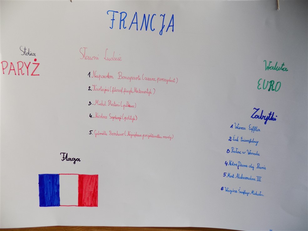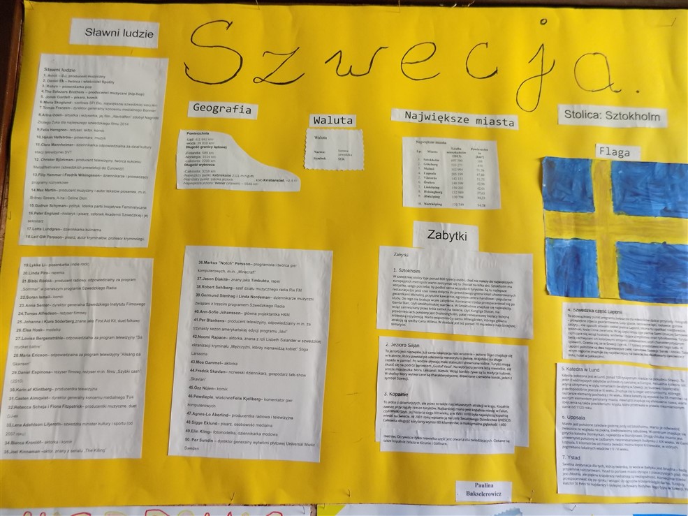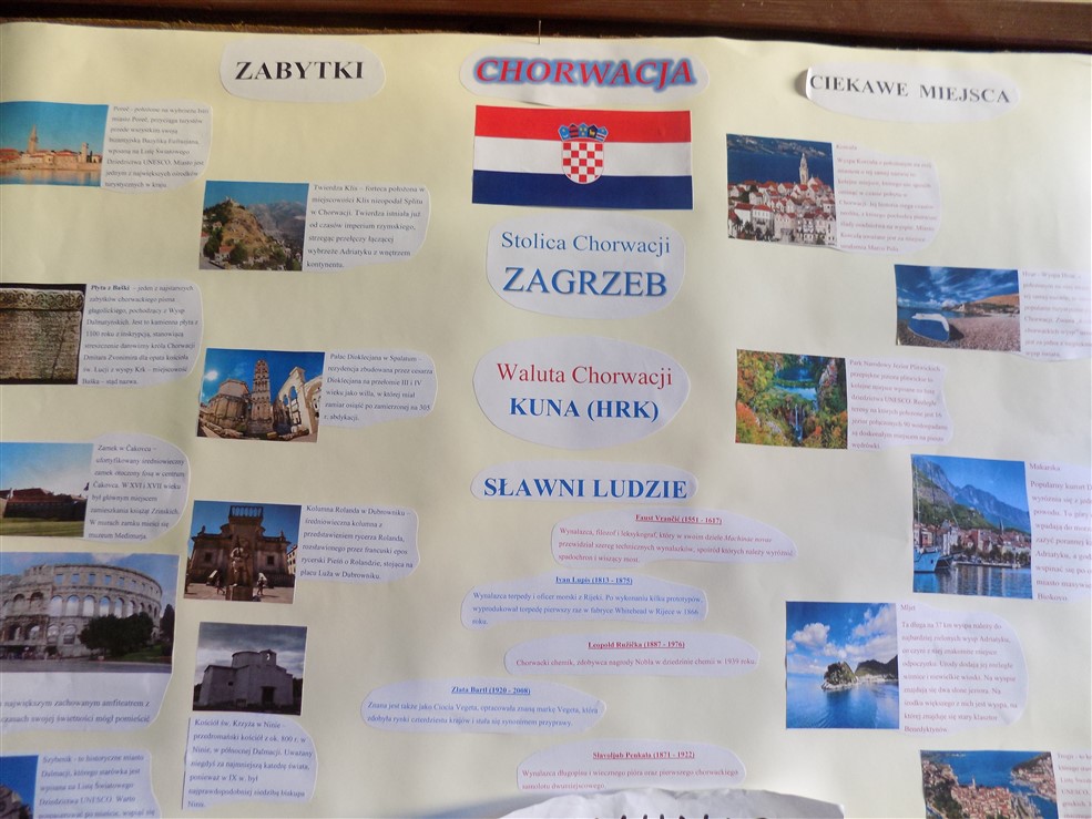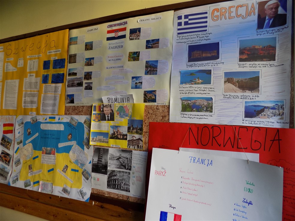 Choć do wakacji jeszcze daleko, to kl. III b odbyła już podróż po krajach europejskich. Uczniowie wykonali plakaty przedstawiające losowo wybrany kraj. Na plakatach pojawiły się flagi i stolice, ciekawe miejsca i zabytki, które warto zobaczyć. I wcale nie była to „podróż za jeden uśmiech”, bo warto znać walutę obowiązującą w danym kraju. Ciekawa i pouczająca to była podróż. Czekamy na wakacje, może spełnią się nasze marzenia. A póki co na uwagę zasługują prace wykonane przez: Oliwię Kaźmierczak, Jakuba Kmitę, Wiktora Robakowskiego, Remigiusza Szafirowicza, Paulinę Bakselerowicz, Tomasza Środę. A tak na marginesie, to mamy dwóch takich, którzy marzą o podróży do Dubaju. Życzymy spełnienia marzeń!