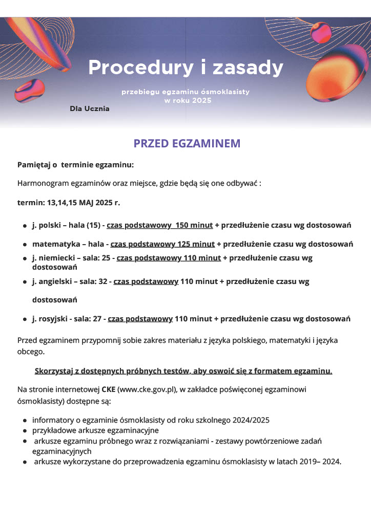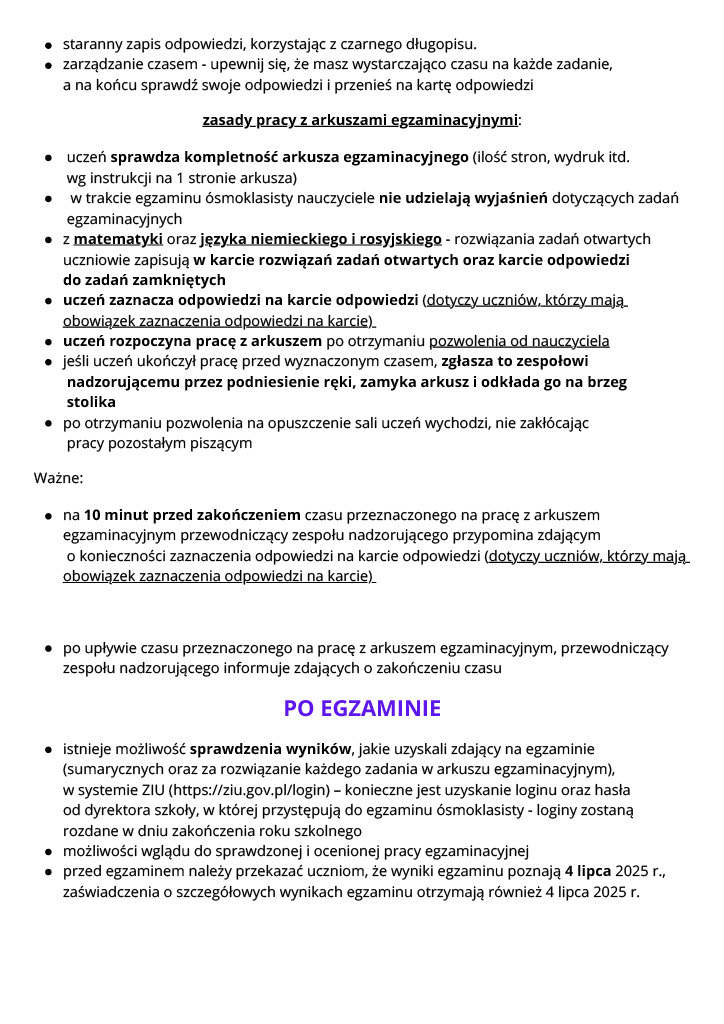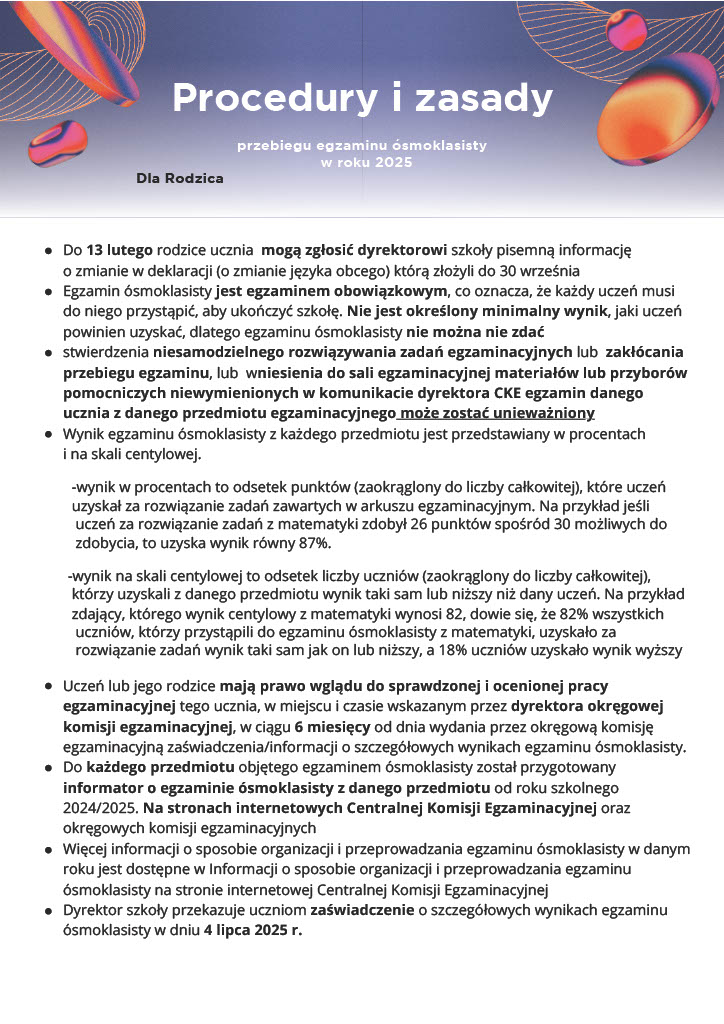 - Informacja o sposobie organizacji i przeprowadzania egzaminu ósmoklasisty w 2026 r.