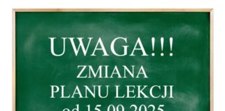 UWAGA!!! Zmiana planu lekcji od 15.09.2025