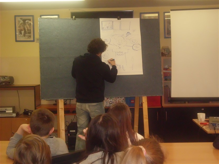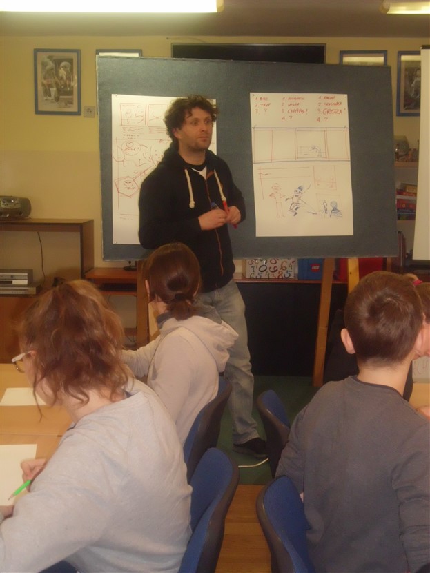 2 marca 2016 r. uczniowie kl. V i VI uczestniczyli w warsztatach rysowania komiksu. Po części teoretycznej pracowali nad własnymi paskami komiksowymi. Dowiedzieli się m.in. co to jest kadr komiksowy, co to są rynny, jakie jest zastosowanie onomatopei, jak rysować siłę dźwięku, jakie były początki komiksu i jak się zmieniała jego forma itp. Warsztaty uważam za bardzo ciekawe ( co stwierdzam po panującym skupieniu i ciszy) i mam nadzieję, że pan Szymon obudził w młodych mieszkańcach gminy pasję do rysowania:) Paski komiksowe narysowane przez uczestników można podziwiać w bibliotece. Szymon Teluk– prowadzący warsztaty, rysownik z wieloletnim doświadczeniem, wykładowca-instruktor Ośrodka Postaw Twórczych we Wrocławiu, pracownik dydaktyczny Uniwersytetu Zielonogórskiego, gdzie prowadzi „Studio rysunku koncepcyjnego i komiksu”. Warsztaty zorganizowała Kierownik Biblioteki Publicznej w Lubniewicach.