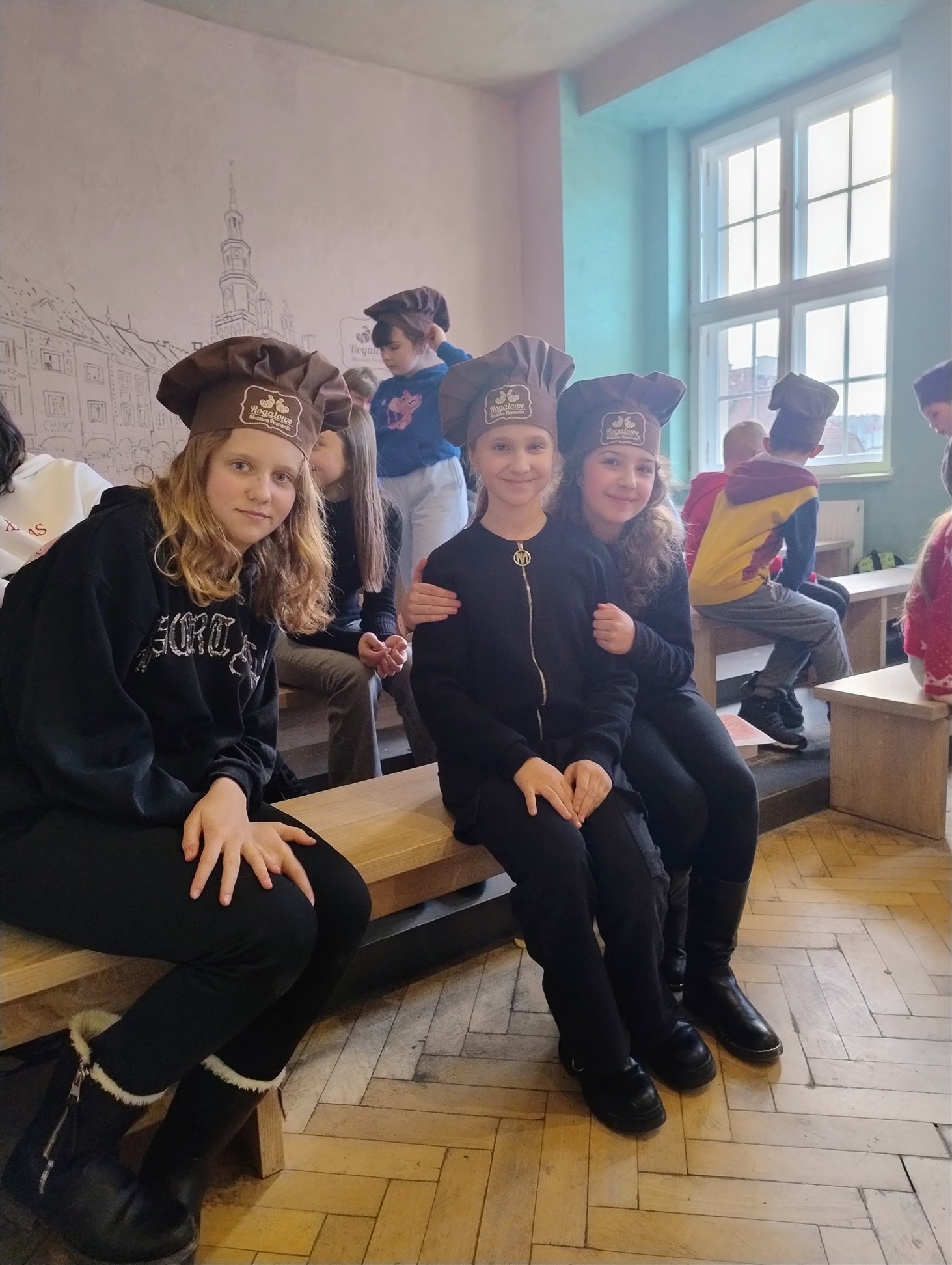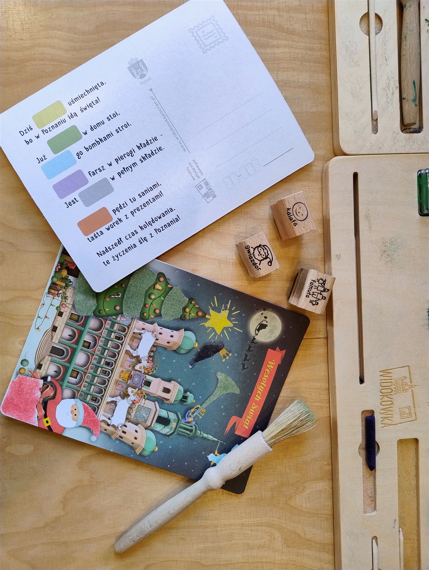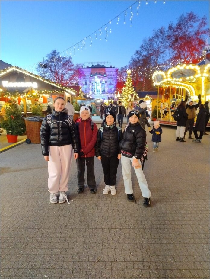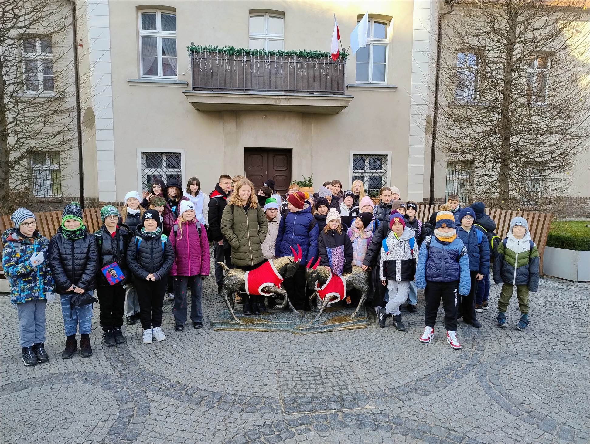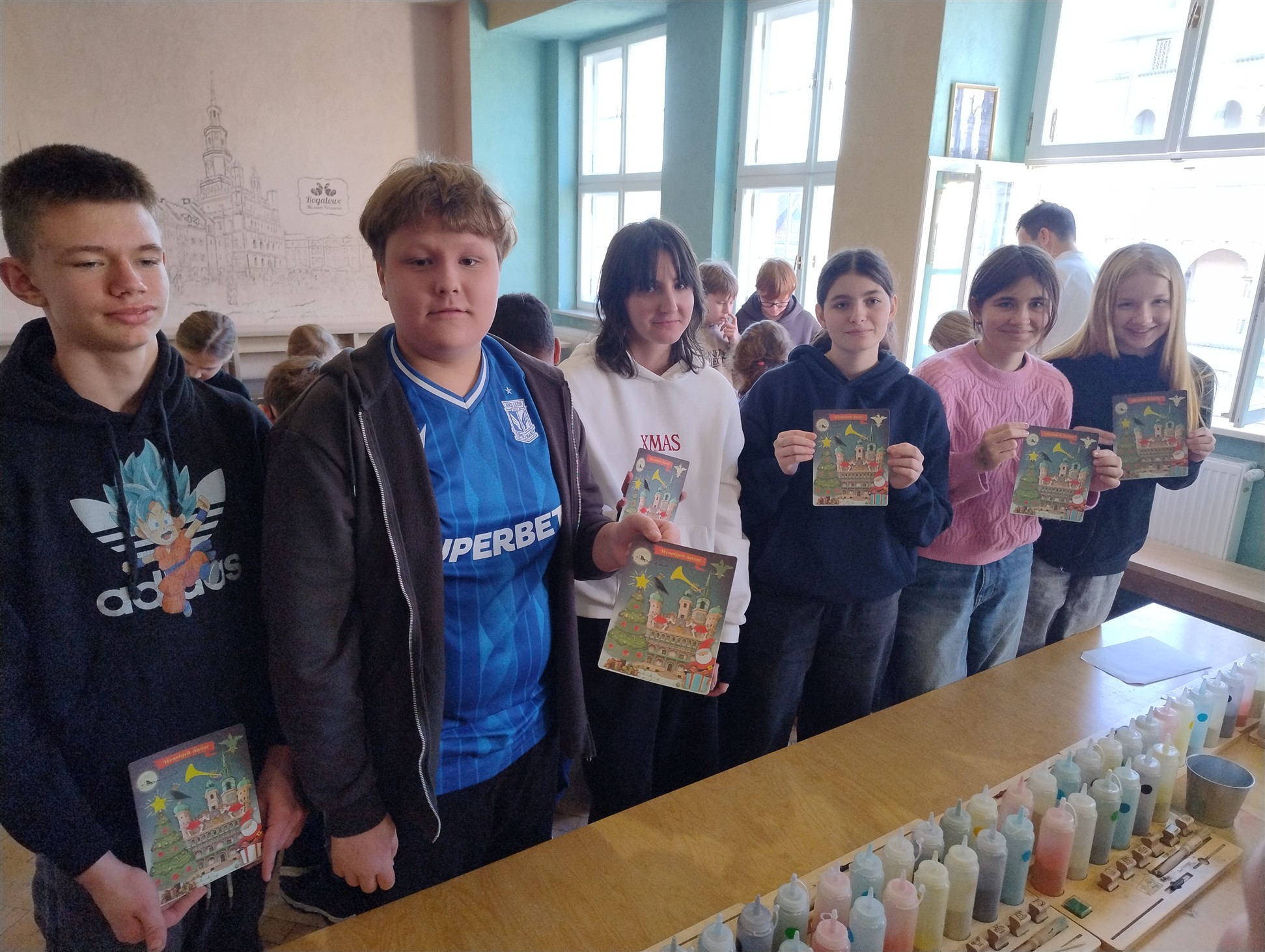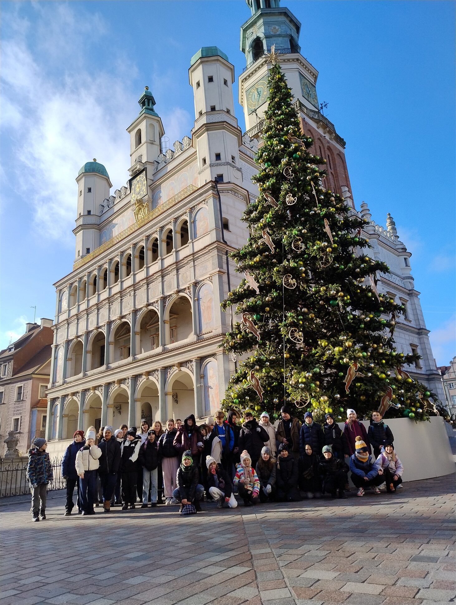 W trakcie warsztatów edukacyjno – artystycznych „Widokówka z Poznania” uczniowie poznali legendę o mieście oraz zaznajomili się z poznańskimi symbolami. Dzieci wykonały swoje widokówki z ratuszem i koziołkami, uzupełniając pola kolorowymi pisakami. Uzupełniali stempelkami ze słówkami gwary poznańskiej pozdrowienia z Poznania. Poznali historię koziołków, Starego Rynku i hejnału. Każdy uczestnik zabrał własnoręcznie zrobioną widokówkę. Podczas pokazów rogalowo – koziołkowych poznały legendę o rogalach barcińskich i składniki używane do produkcji rogali święto -marcińskich. Wspólnie je przygotowywali i degustowali, a na koniec otrzymali certyfikat czeladniczy. Zajęcia zakończyły się oglądaniem poznańskich koziołków. Następnie udaliśmy się na posiłek, a potem na jarmark świąteczny.