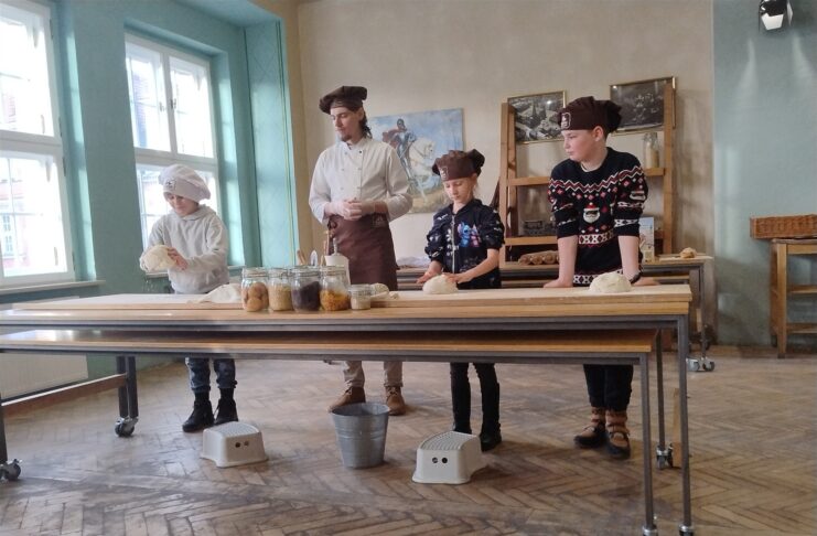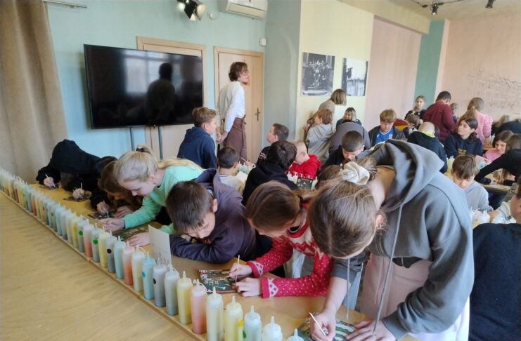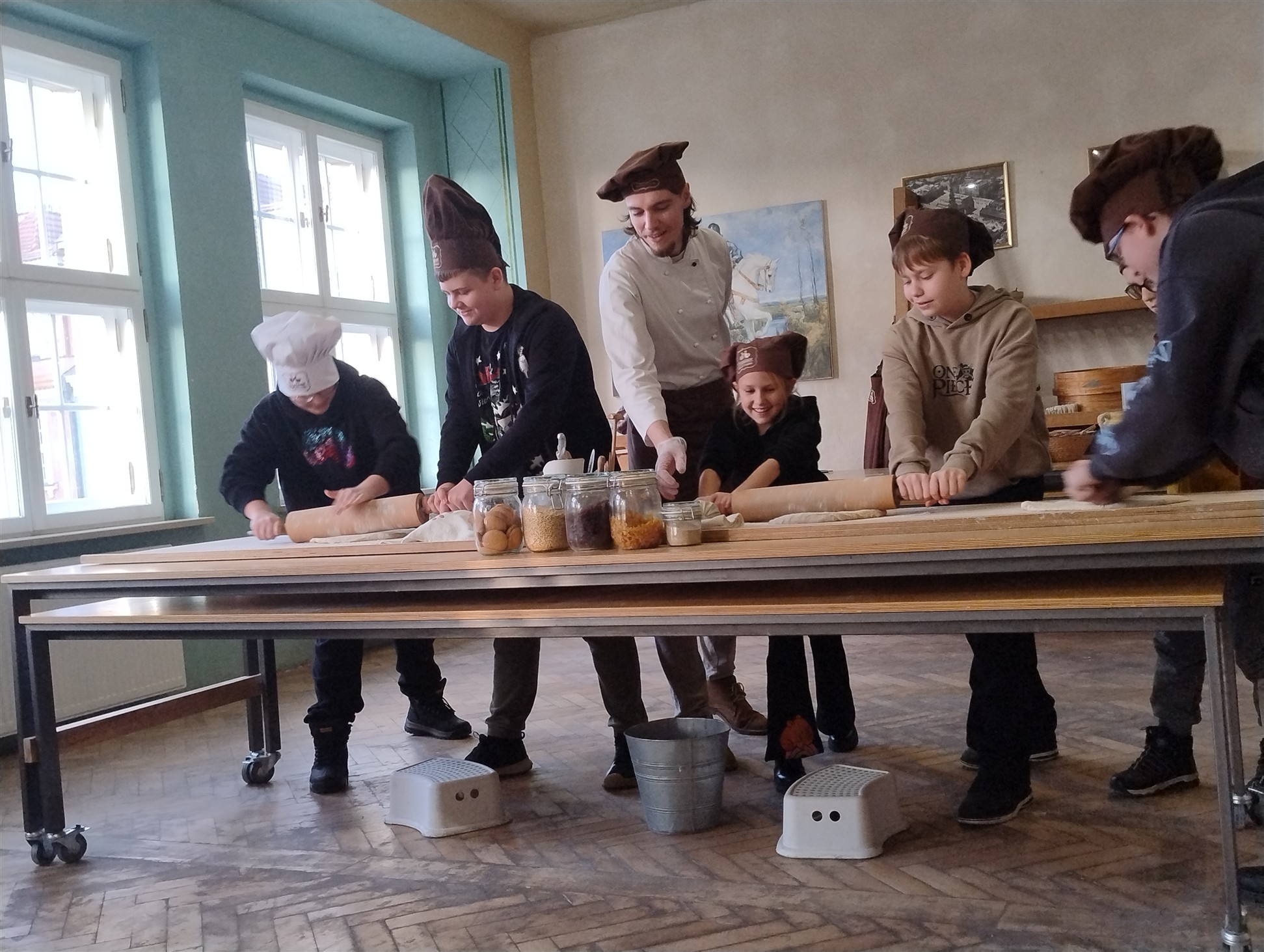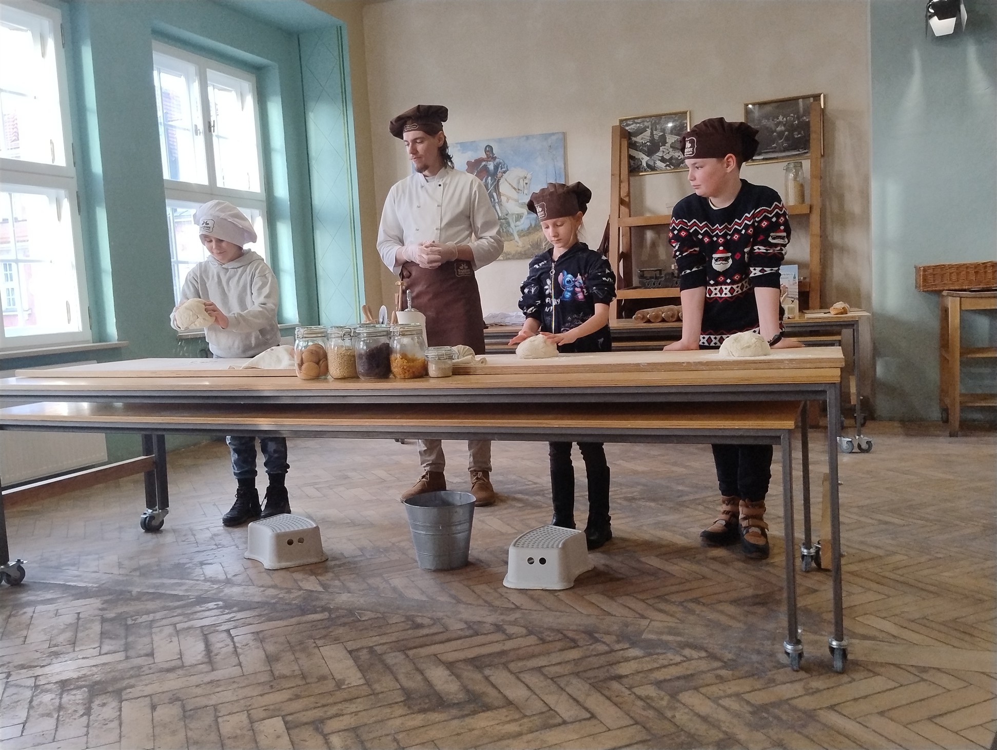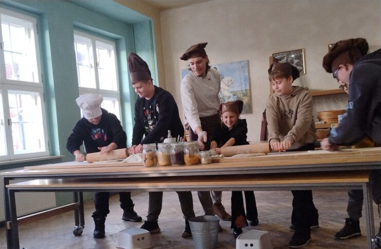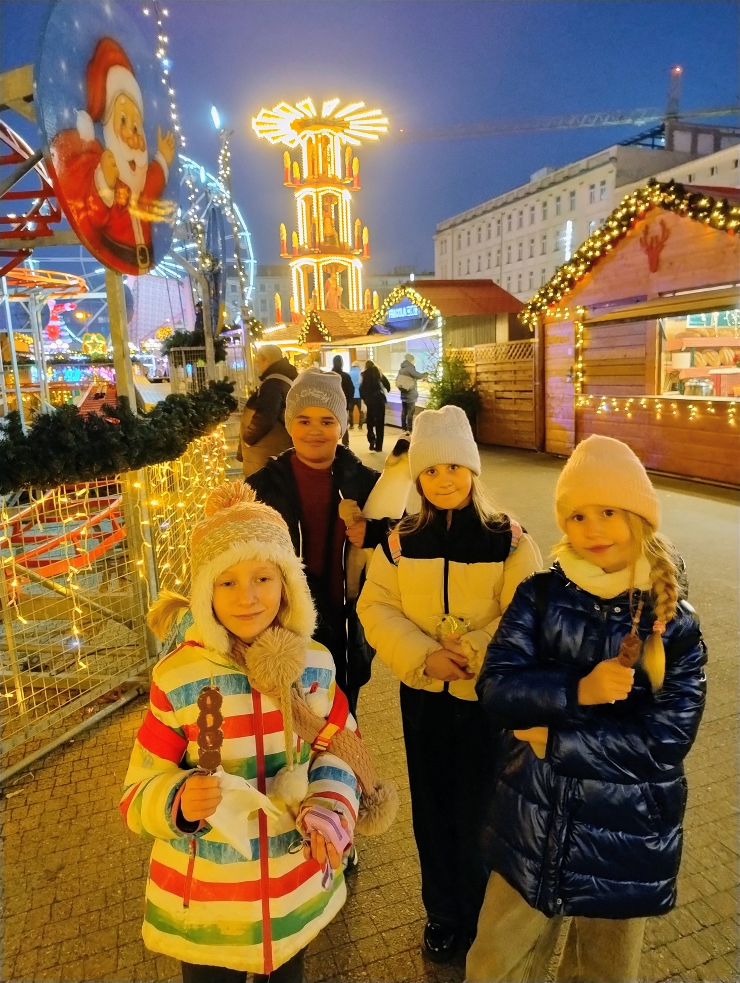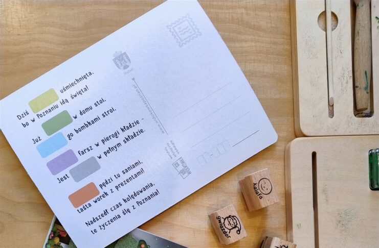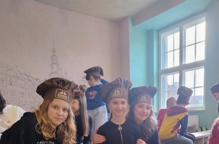 W trakcie warsztatów edukacyjno – artystycznych „Widokówka z Poznania” uczniowie poznali legendę o mieście oraz zaznajomili się z poznańskimi symbolami. Dzieci wykonały swoje widokówki z ratuszem i koziołkami, uzupełniając pola kolorowymi pisakami. Uzupełniali stempelkami ze słówkami gwary poznańskiej pozdrowienia z Poznania. Poznali historię koziołków, Starego Rynku i hejnału. Każdy uczestnik zabrał własnoręcznie zrobioną widokówkę. Podczas pokazów rogalowo – koziołkowych poznały legendę o rogalach barcińskich i składniki używane do produkcji rogali święto -marcińskich. Wspólnie je przygotowywali i degustowali, a na koniec otrzymali certyfikat czeladniczy. Zajęcia zakończyły się oglądaniem poznańskich koziołków. Następnie udaliśmy się na posiłek, a potem na jarmark świąteczny.