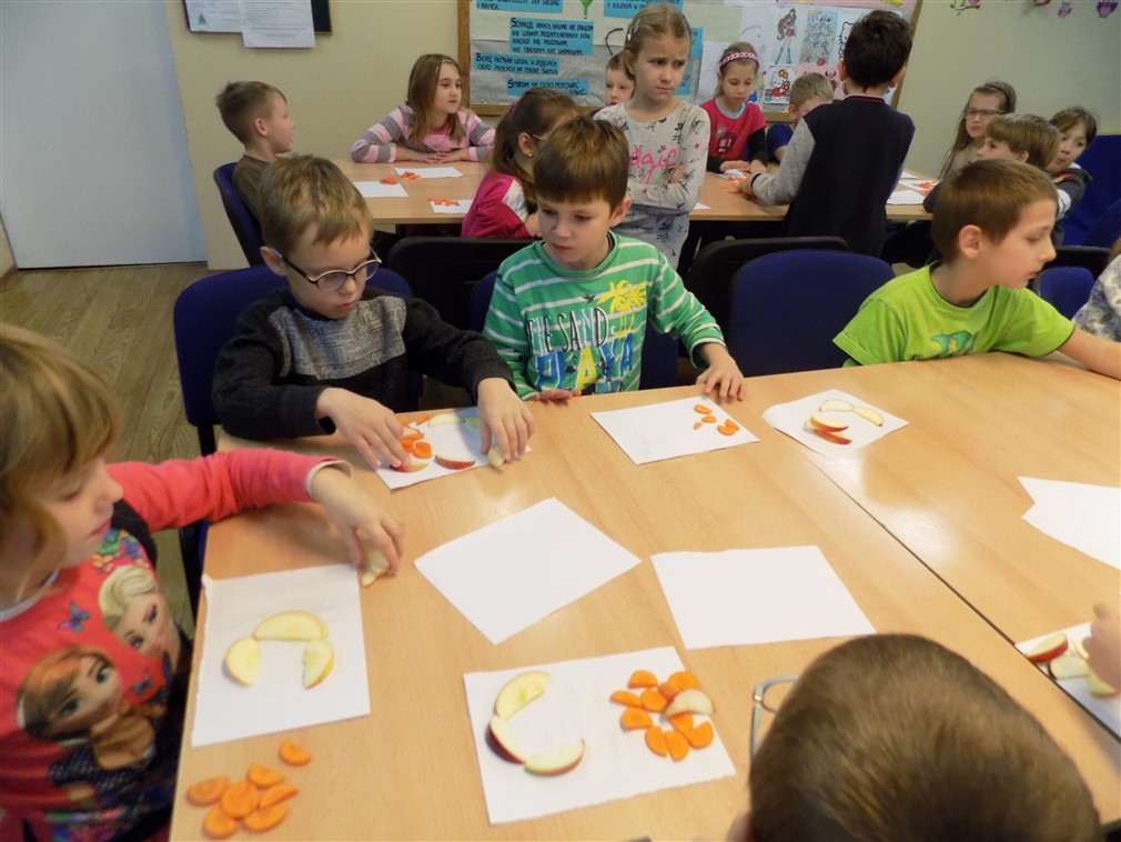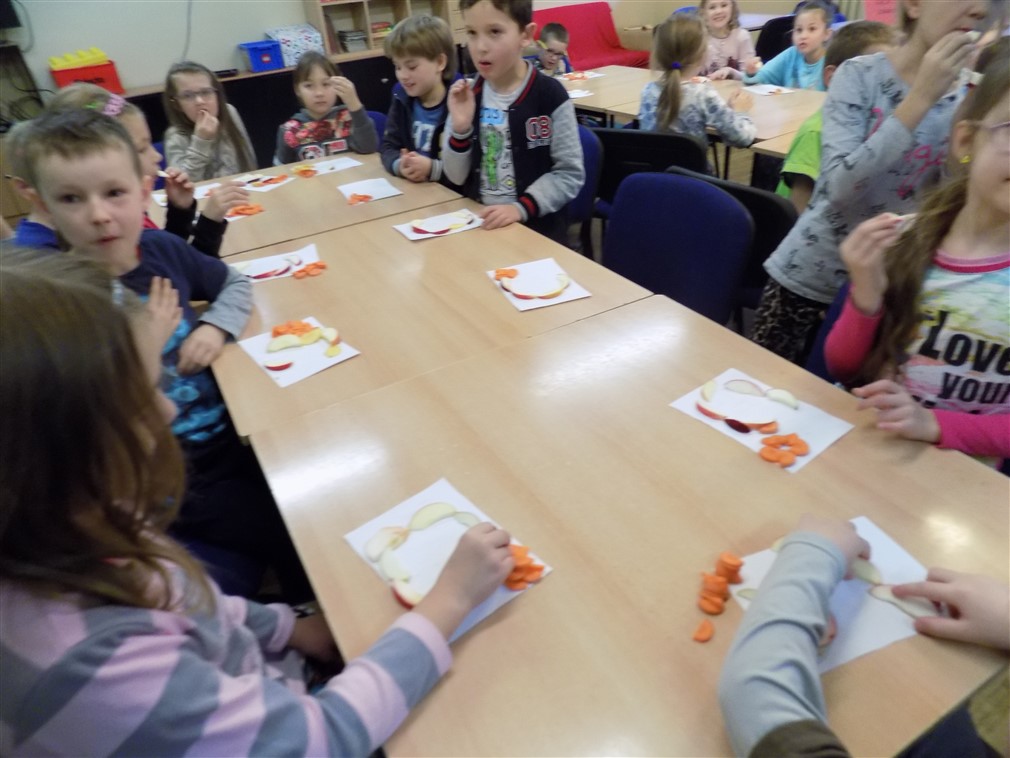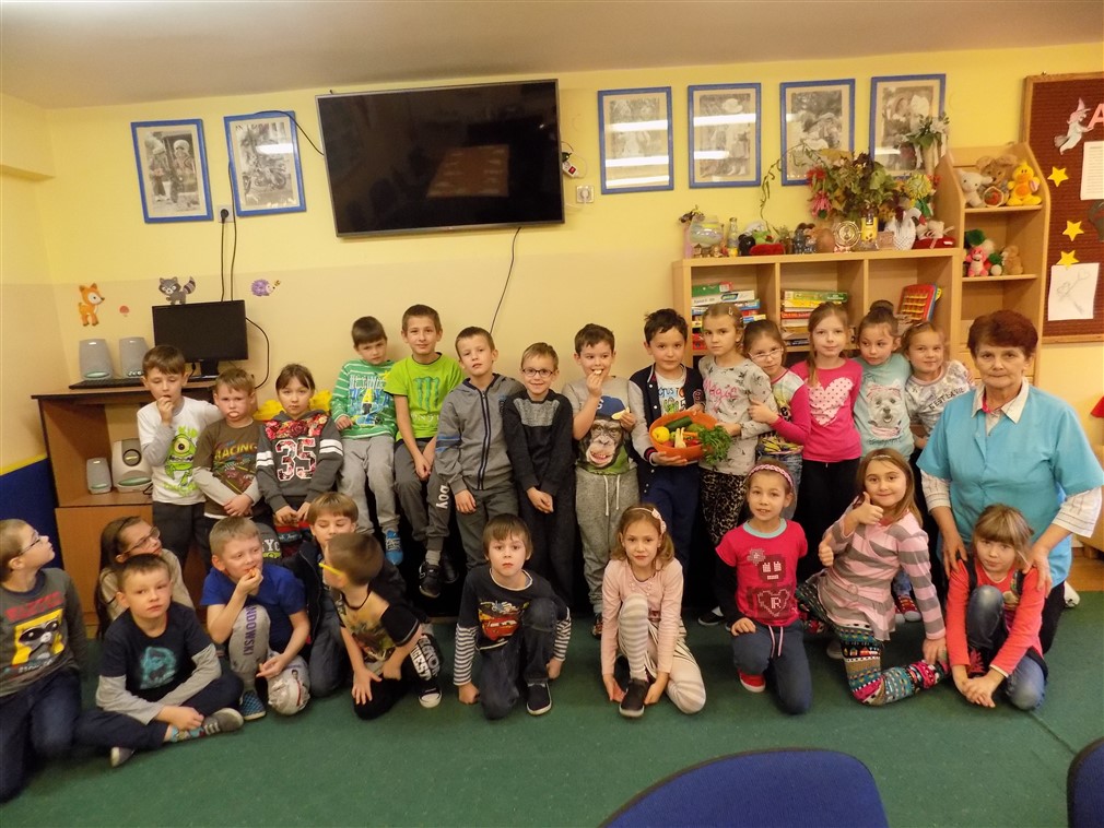 W dniu 16.11.2016 r. w świetlicy szkolnej dla uczniów klas II a i II b Szkoły Podstawowej odbyły się zajęcia pt. „Wyzwania dla umysłu- ćwiczenie zmysłów”. Podczas spotkania promującego zdrowie uczniowie rozpoznawali warzywa i owoce poprzez węch, smak i dotyk, rozwiązywali zagadki oraz układali z plasterków, marchewki i jabłka, literki symbolizujące witaminy. Całość oczywiście poprzedziła krótka prelekcja przeprowadzona przez fachowca, naszą pielęgniarkę szkolną panią Helenę Kowalewską. Zajęcia przygotowała pani Izabela Kiepura- wychowawca świetlicy szkolnej.